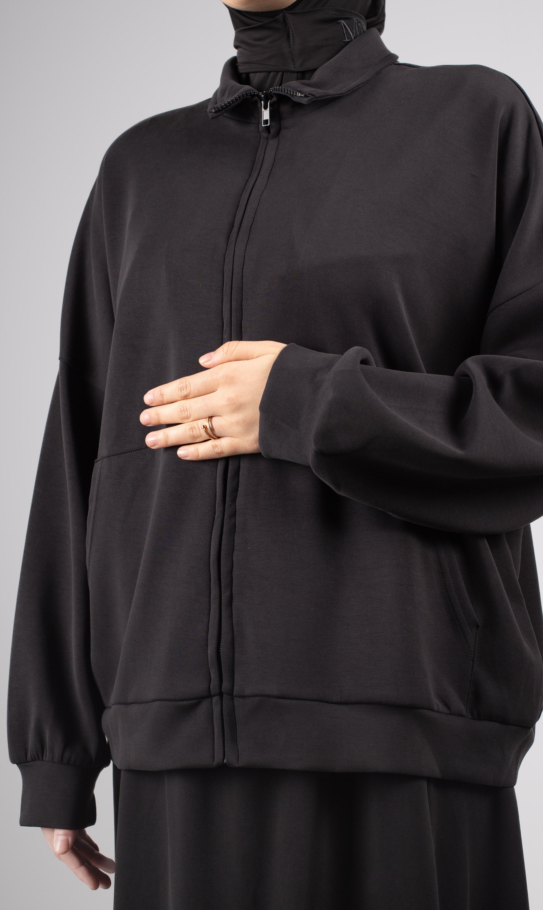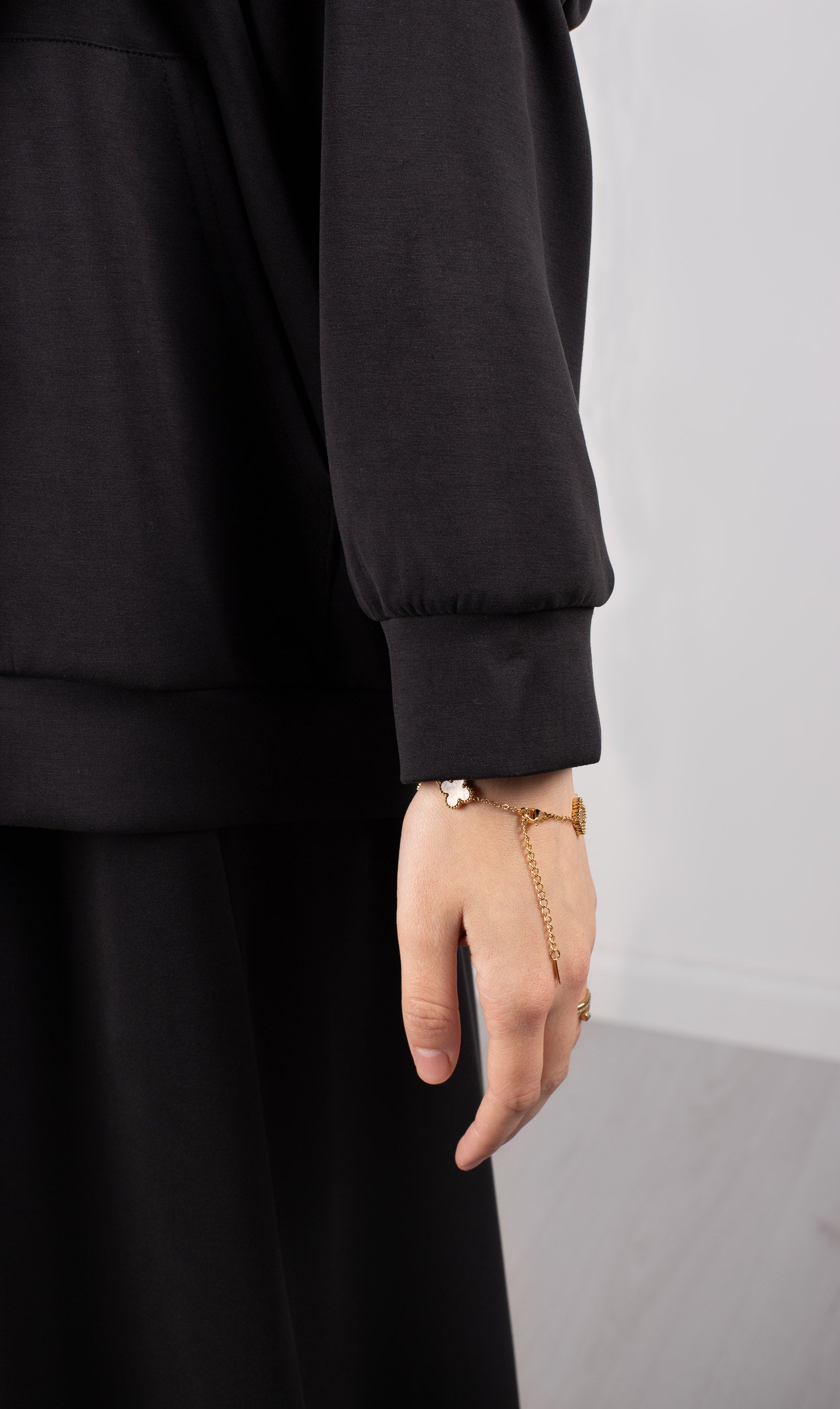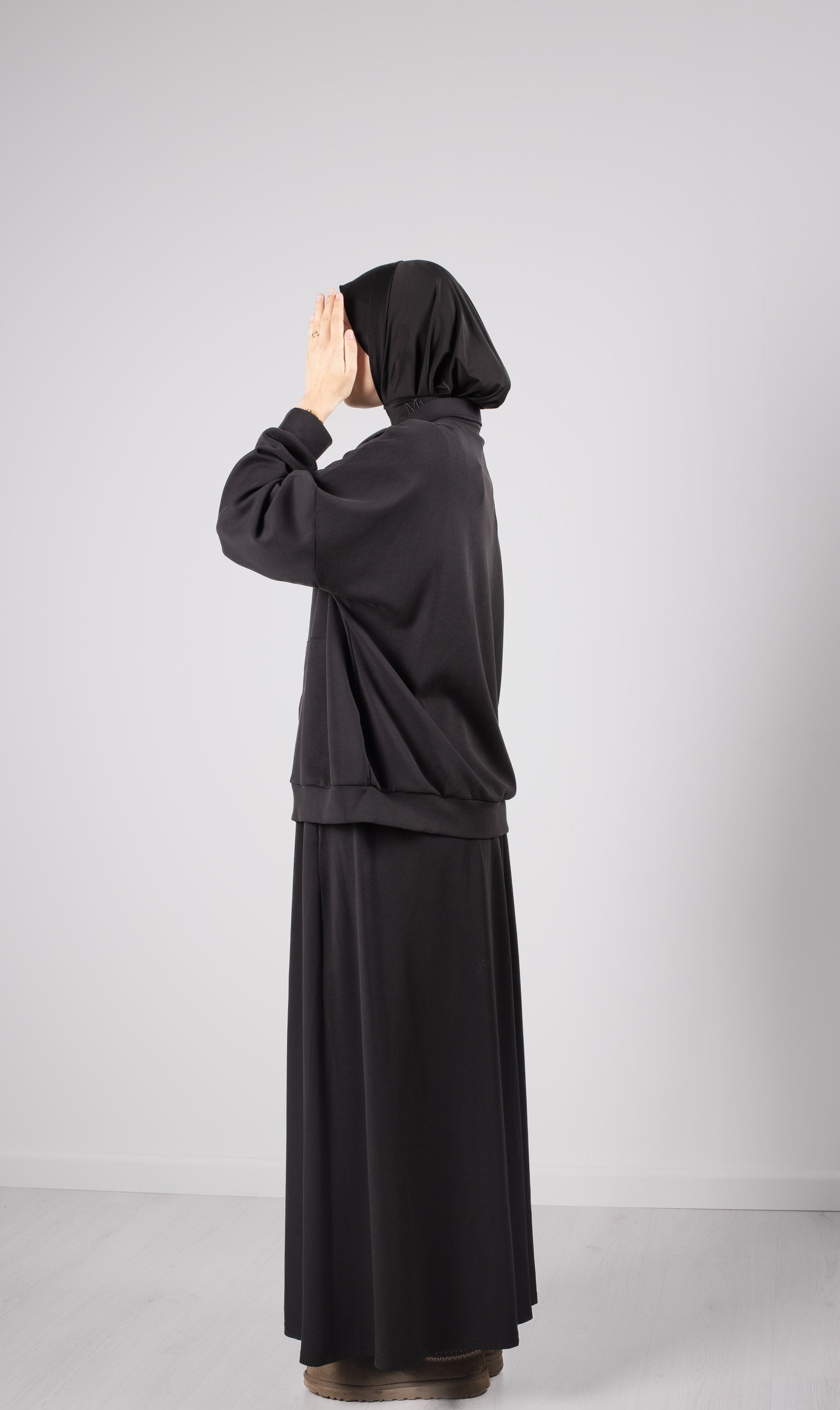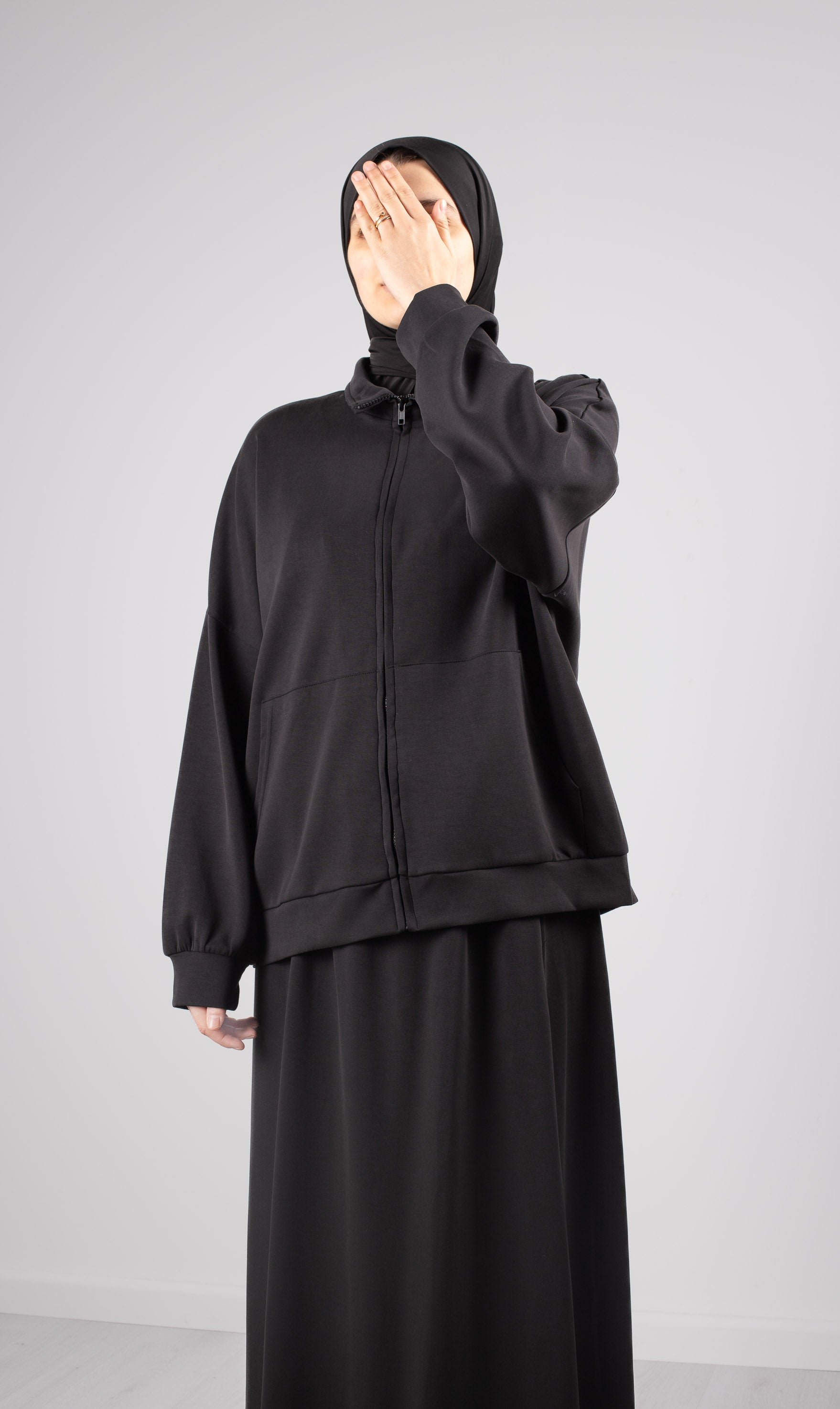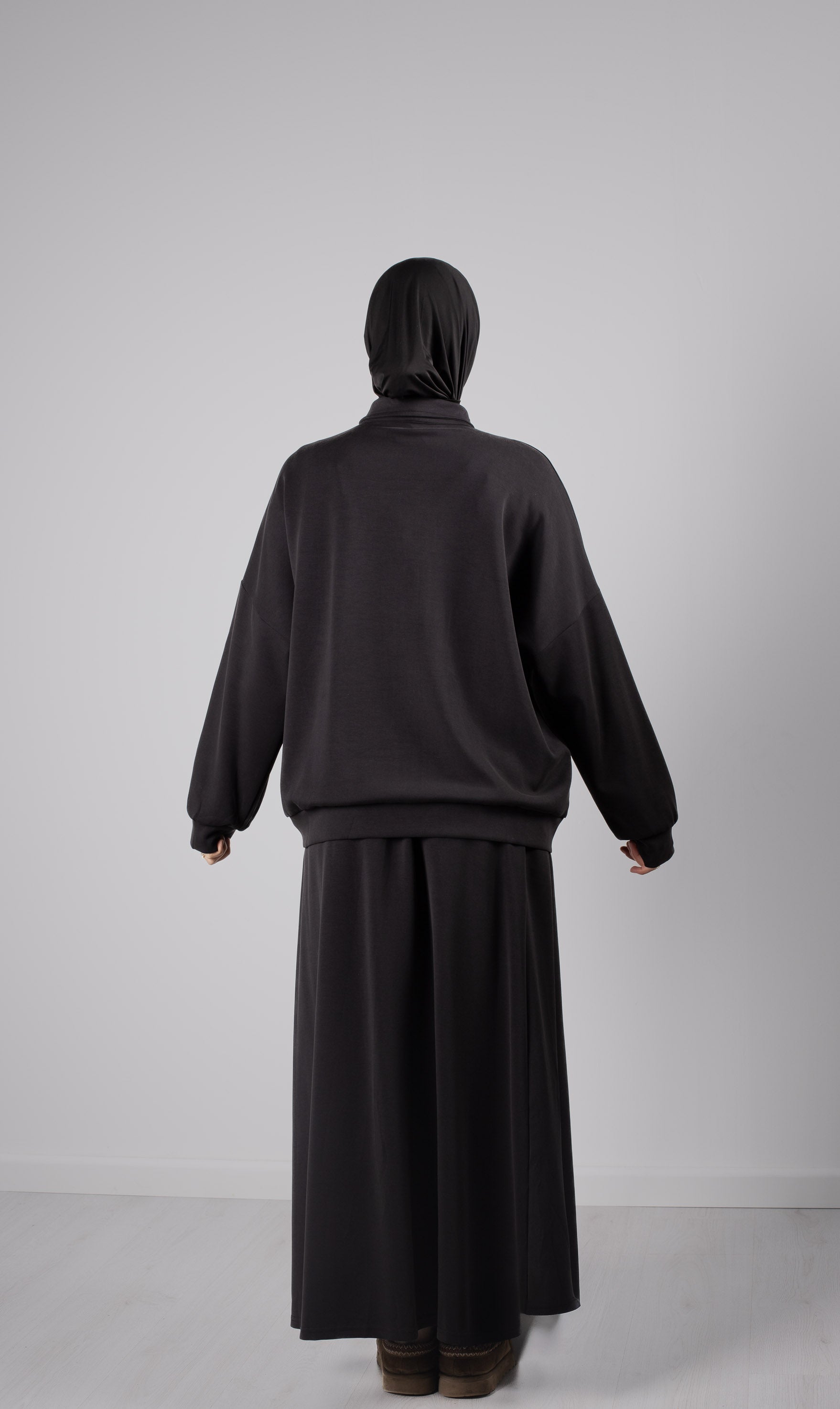 Dieses Twinset vereint Komfort und Stil. Das Oberteil mit Reißverschluss verleiht ihm eine moderne Note, während der Rock mit praktischen Taschen für einen lässigen und praktischen Look sorgt.