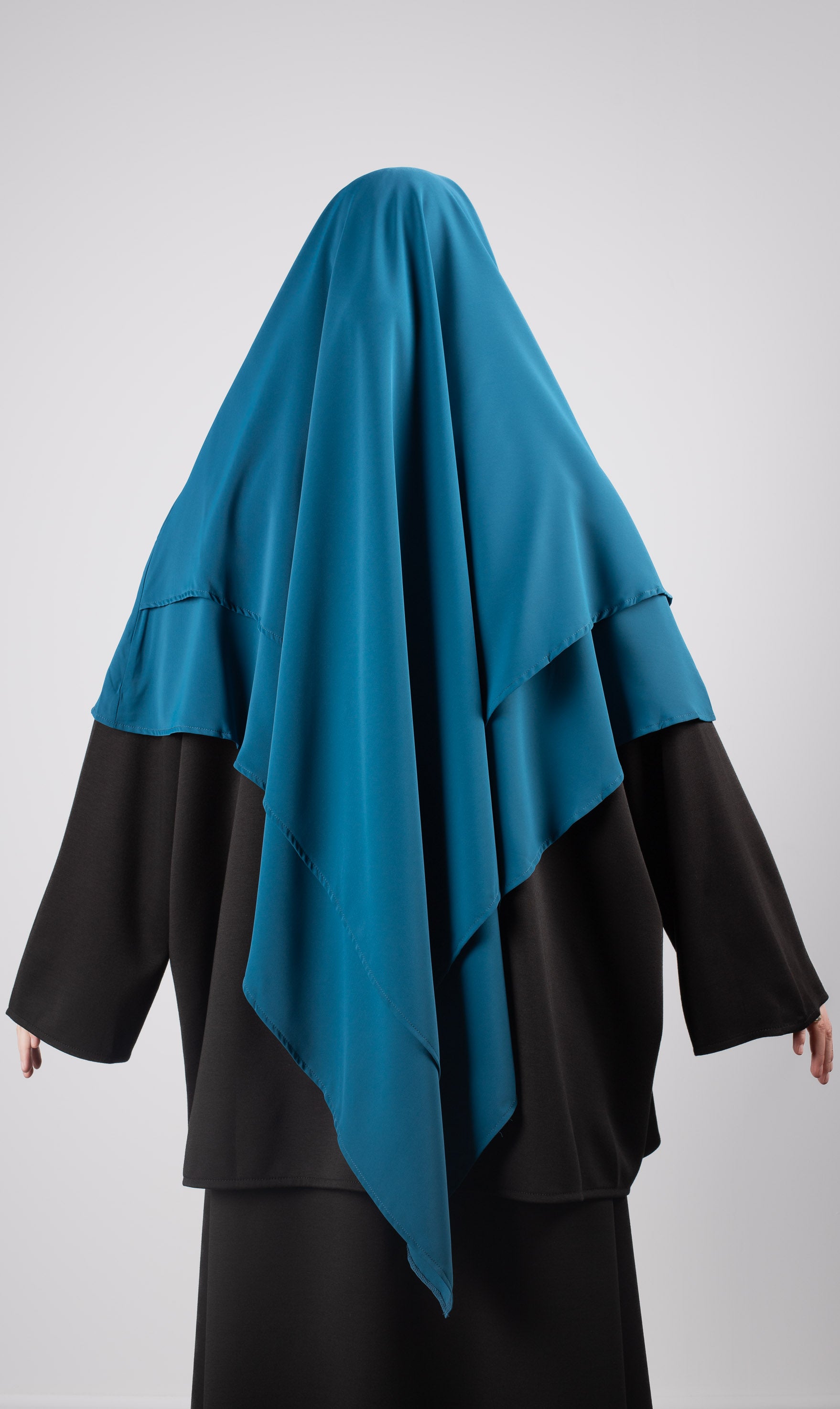 Der Double Diamond Khimar ist dadurch gekennzeichnet, dass er sowohl vorne als auch hinten in einer Spitze endet. Das gibt viel Bewegungsfreiheit beim Tragen. Der MEDINI SILK Stoff fühlt sich seidig weich an. Der Stoff knittert nicht so leicht und ist nicht durchscheinend. Der Khimar kann auch als Niqab getragen werden.